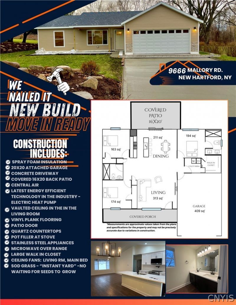 This single family home located at 9666 Mallory Road, New Hartford, NY 13413 is currently listed for sale with an asking price of $450,311. This property was built in 2025 and has 3 bedrooms and 2 full baths with 1350 sq. ft. Mallory Road is located within the New Hartford school district. Search New Hartford real estate on online.cbpp.com today.